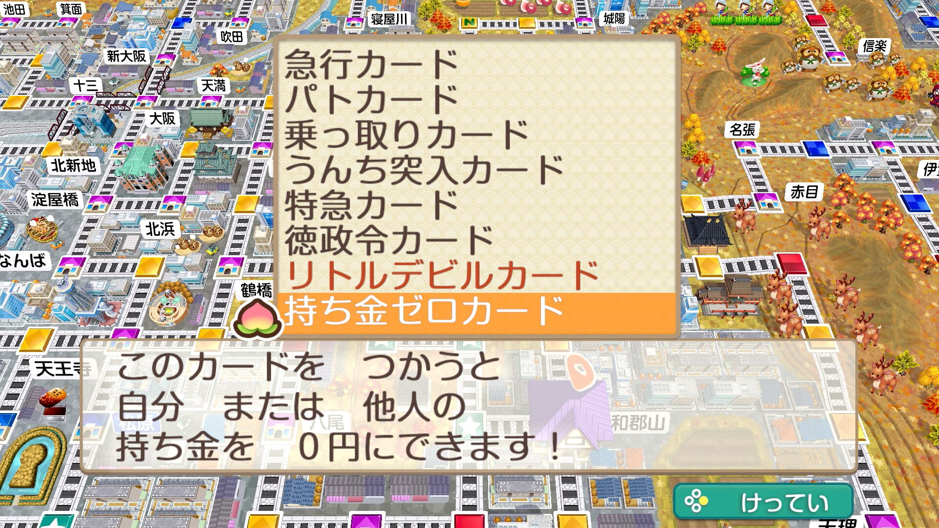 「桃太郎電鉄2 ~あなたの町も きっとある~(桃鉄2)」でも、さまざまな攻撃系カードが登場し、プレイヤー同士の駆け引きが行われます。