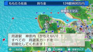 期間延長カードは、周遊駅に止まったのと同じ効果を発揮するカードです。過去作では1枚のみが効果の対象でしたが、桃鉄2では全カードが回復の対象となりました。