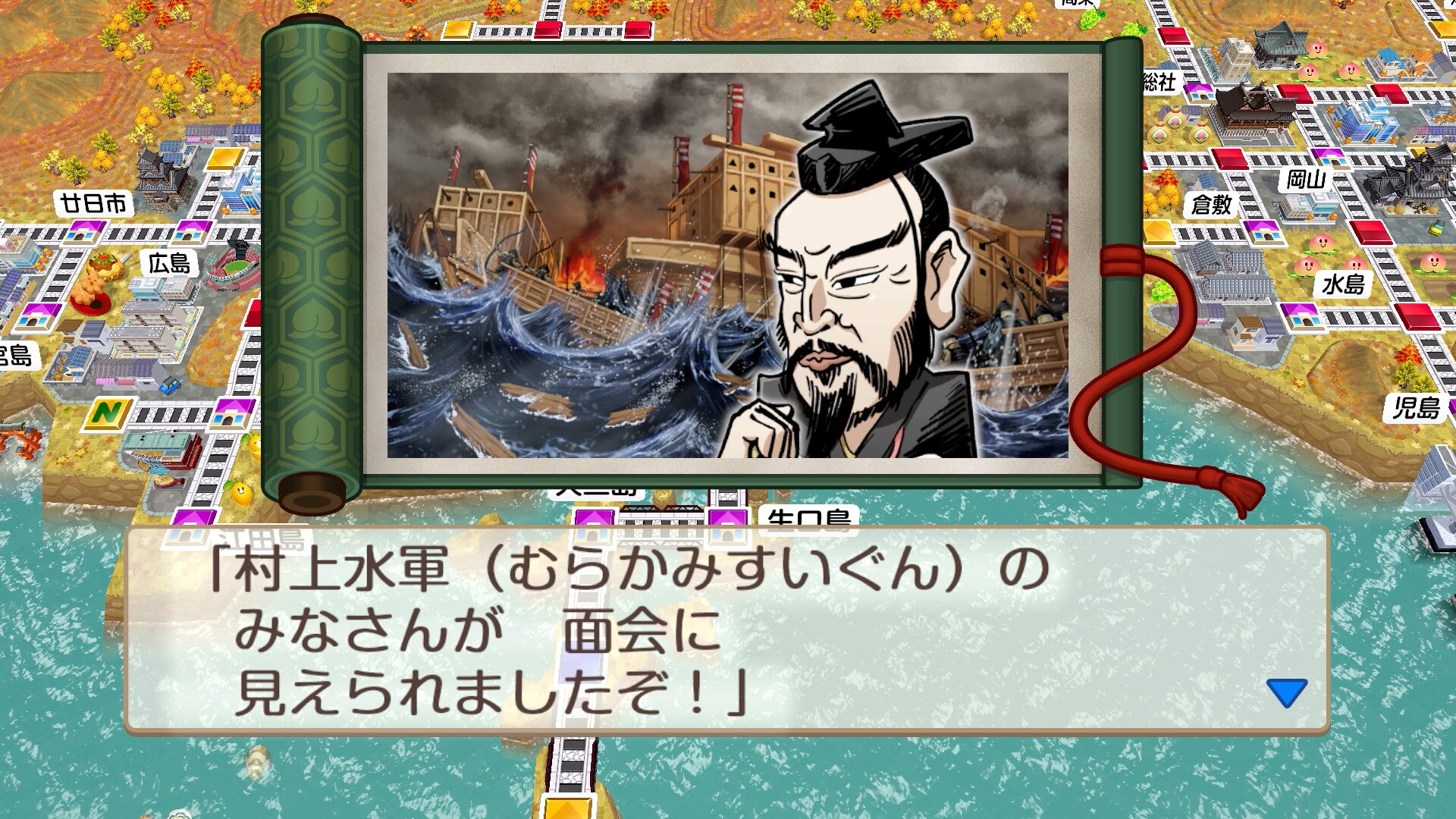 因島(広島)の物件駅を独占し、歴史ヒーローの村上水軍を仲間にしましょう。独占に必要な金額は7億円で、狙えば早い時期から仲間にすることができます。