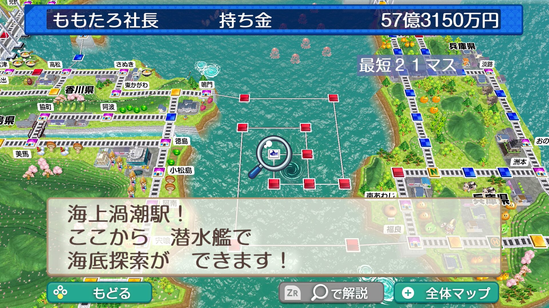 「桃太郎電鉄2 ~あなたの町も きっとある~ 東日本編+西日本編(桃鉄2)」の西日本編では、潜水艦で海底マップに移動し、お宝を入手する海底探検イベントが発生します。