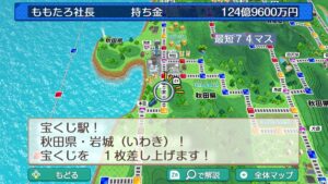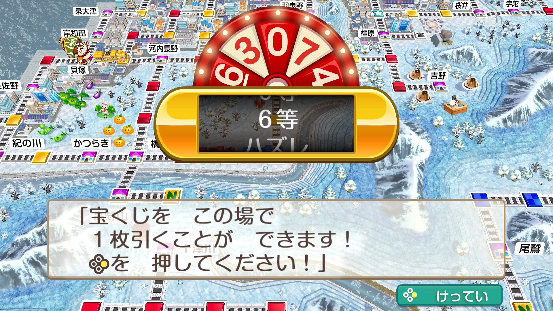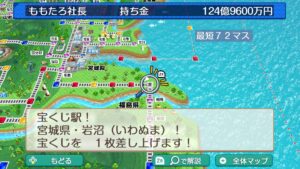 宝くじ駅に止まると、宝くじを引くことができます。1等から6等とハズレがあり、上位に当選すると高額の賞金が手に入ります。
