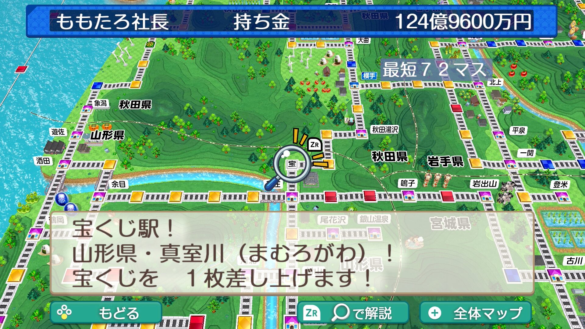 「桃太郎電鉄2 ~あなたの町も きっとある~ 東日本編+西日本編(桃鉄2)」でも、マップ上の数か所に宝くじ駅があり、当たれば思わぬ大金を手にすることができます。