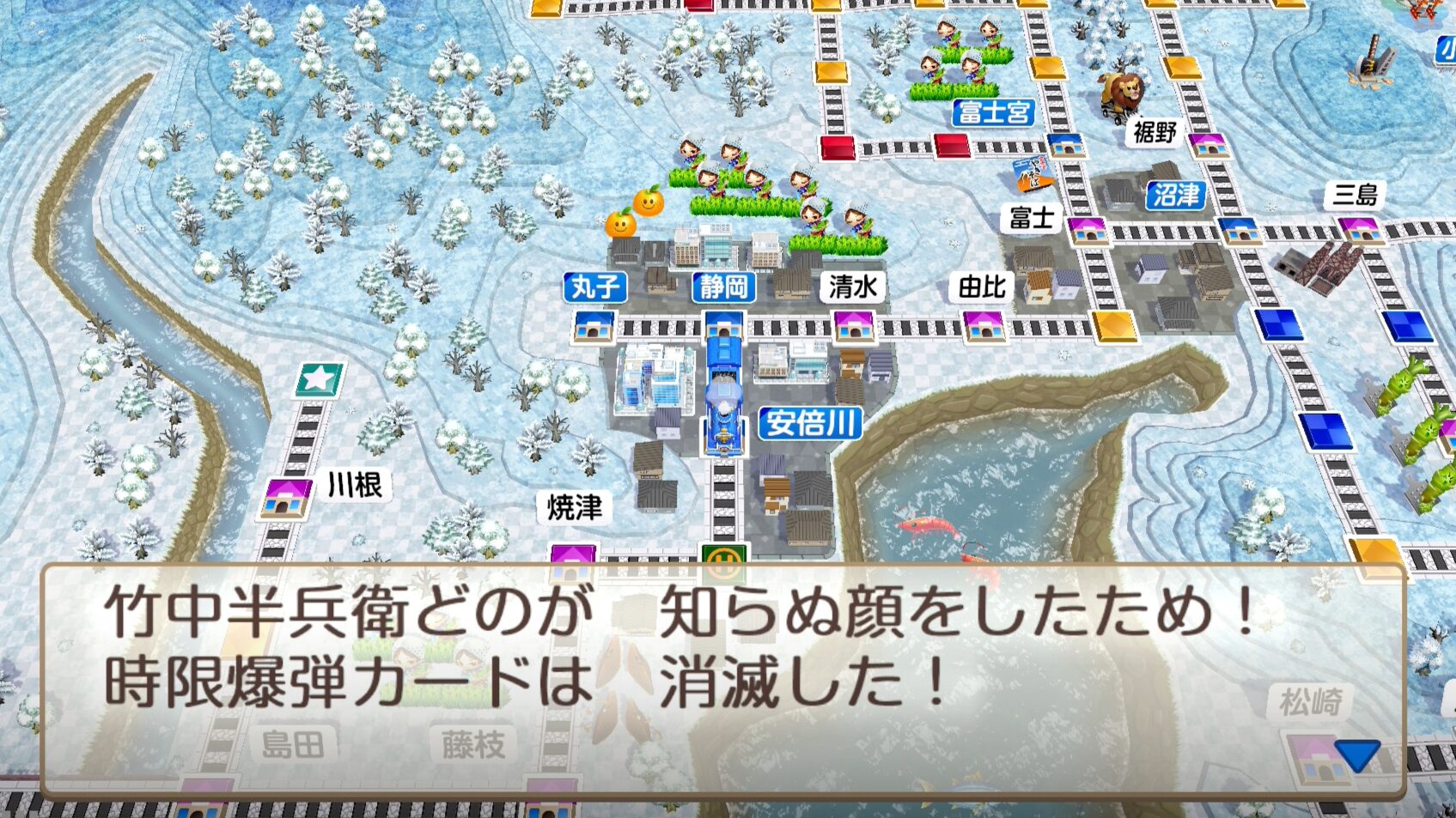 いつもの桃鉄では、歴史ヒーローの力で時限爆弾カードを消すこともできます。