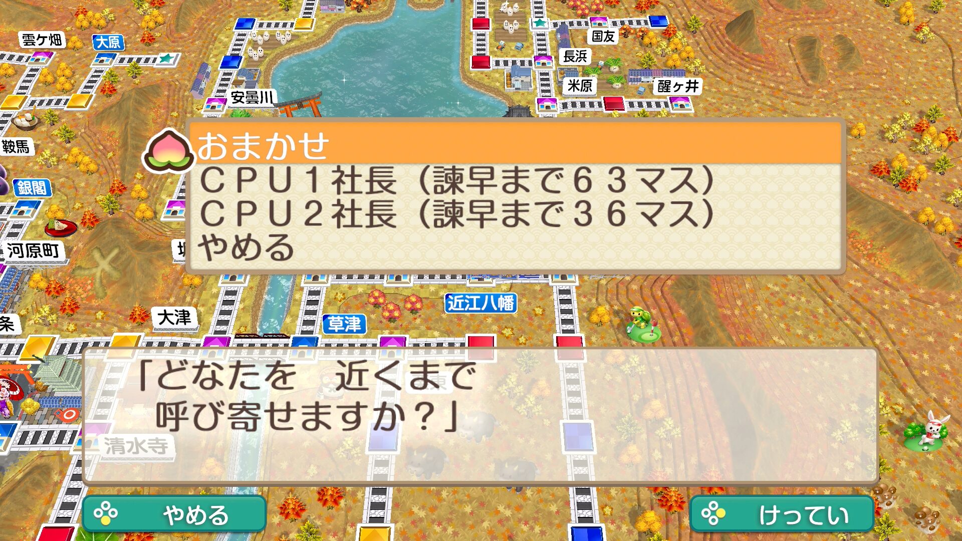 目的地に近づくプレイヤーを妨害する目的で使ってもいいですが、強力なのはボンビーのなすりつけです。近くに呼び寄せたうえで、進行系カードでなすりつけて一気に引き離すことができれば、ボンビーの悪行から逃れることができます。