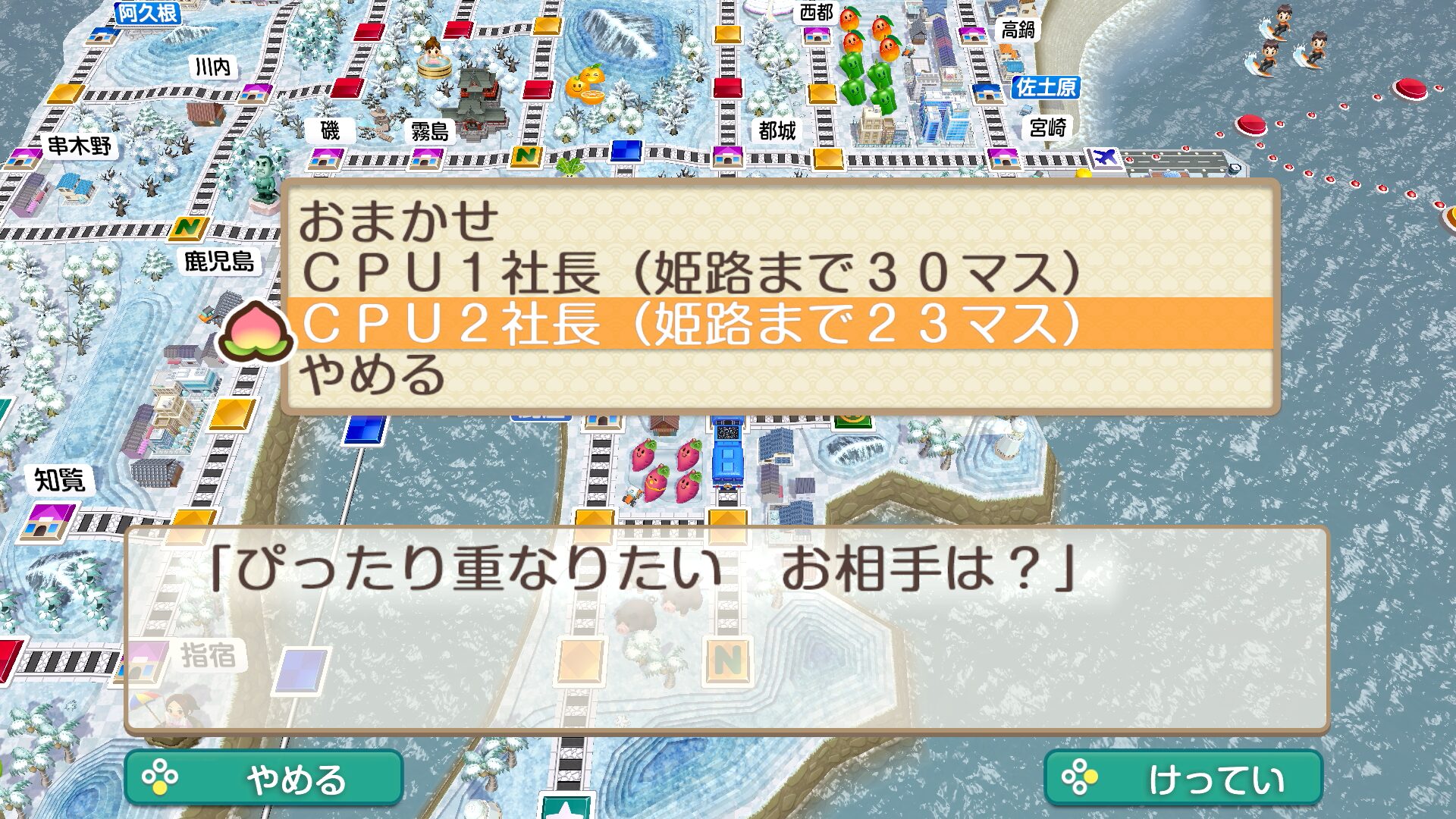 ぴったり付く相手を選ぶときは、目的地に近づけることを優先してもいいですし、ボンビーが取りついているのなら、周回しにくいところにいる相手を選んで飛ぶのもよいでしょう。