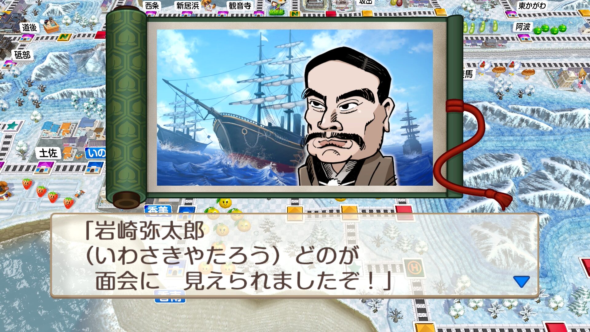 「桃太郎電鉄2 ~あなたの町も きっとある~(桃鉄2)」の歴史ヒーロー・岩崎弥太郎が出現する物件駅や必要金額、効果を解説します。