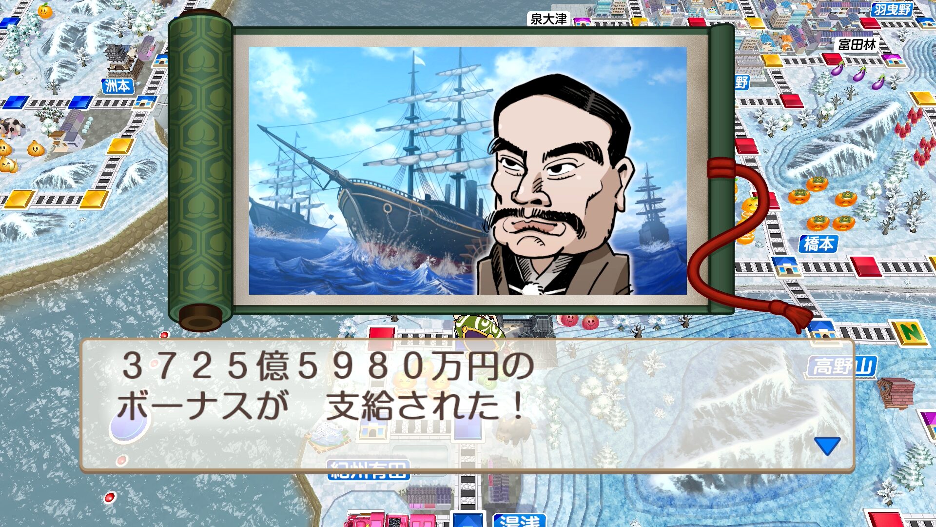 岩崎弥太郎を仲間にすると、12月に確率でお金をくれます。序盤は出やすく、中盤以降は発生しづらくなります。
