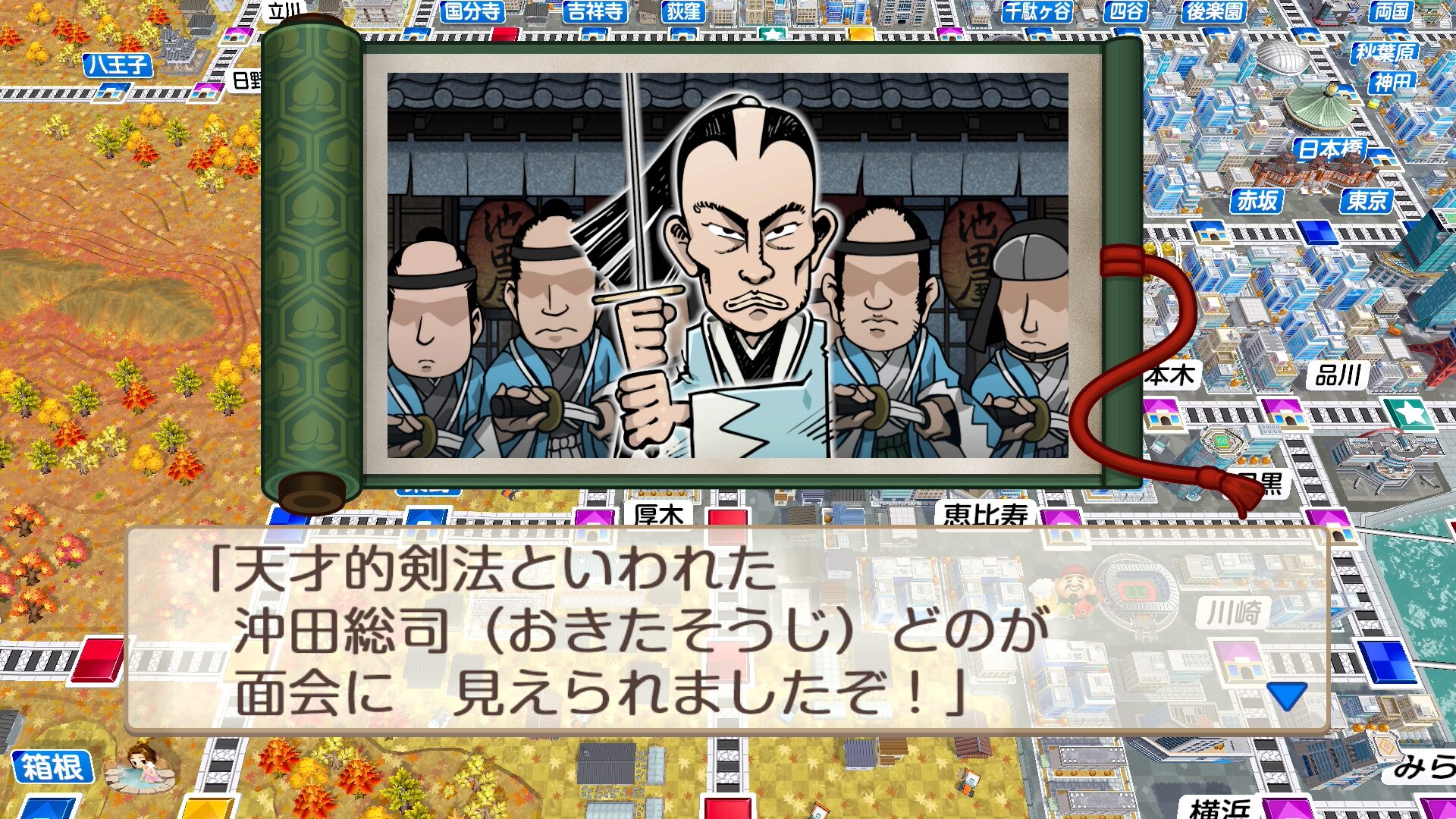 沖田総司を仲間にすると、他プレイヤーが所持する高額物件を1件奪います。仲間にしてしばらくの間は、イベントが高い確率で発生します。
