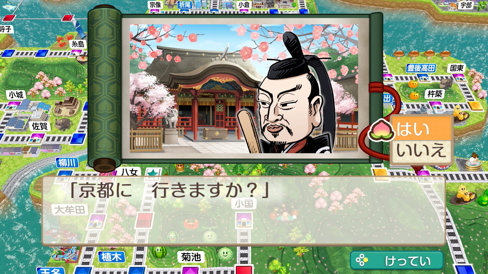 菅原道真を仲間にすると、京都府内に目的地があるとき、京都府の物件駅まで飛ばしてくれます。移動を断ることもできます。