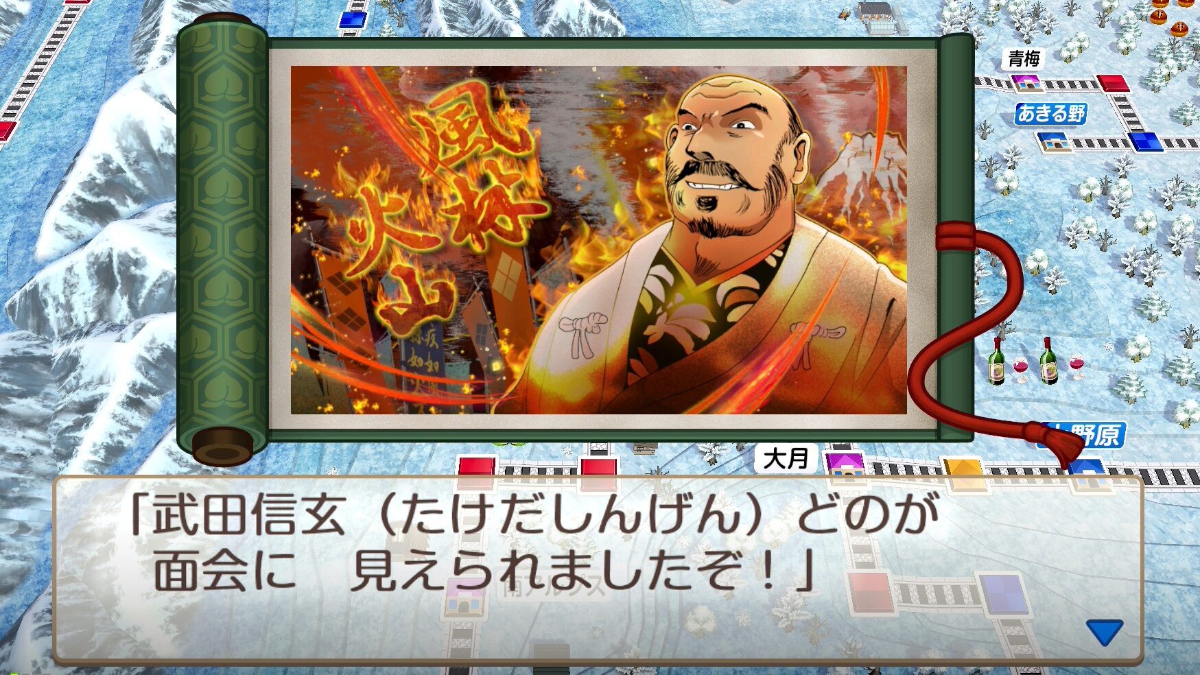 武田信玄を仲間にすると、武田信玄の代名詞とも言える「風林火山」にちなんだ効果を発動します。仲間になってしばらくの間は、イベントが高い確率で発生します。