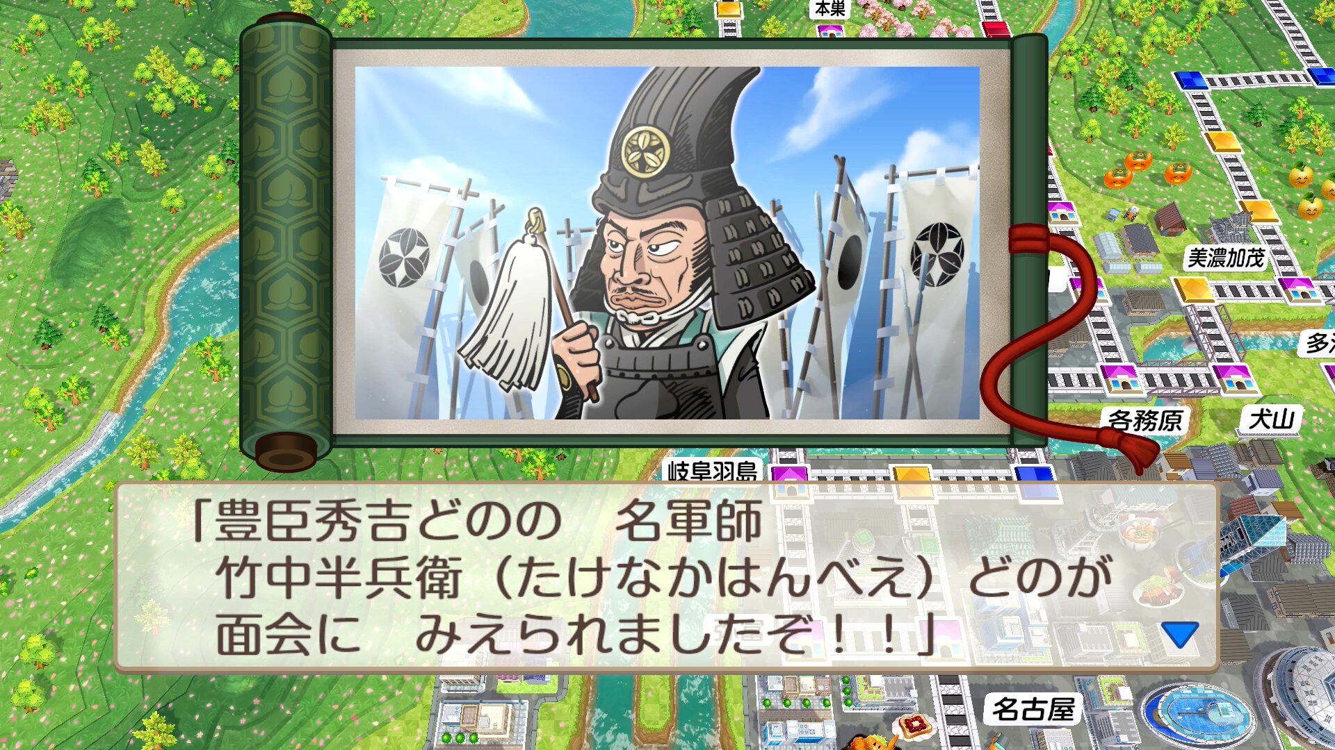 竹中半兵衛は、垂井(岐阜県)を独占したときに仲間になる歴史ヒーローです。独占金額は3.5億円とかなり低めで、序盤から仲間にすることができます。