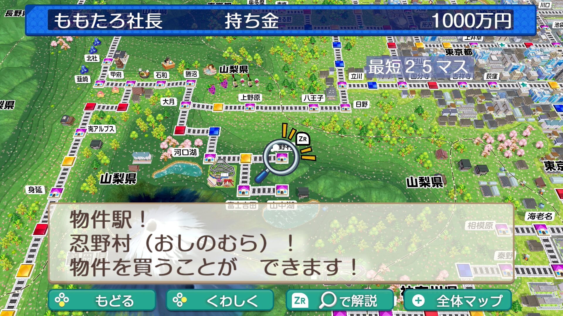 「桃太郎電鉄2 ~あなたの町も きっとある~(桃鉄2)」の東日本編にある物件駅「忍野村(山梨県)」の物件一覧や購入金額、収益を紹介します。