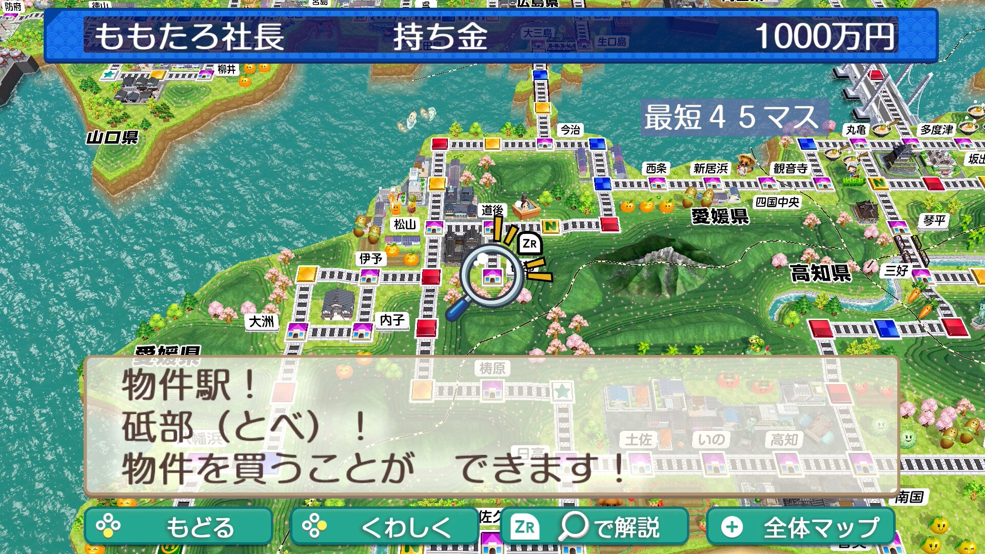 「桃太郎電鉄2 ~あなたの町も きっとある~(桃鉄2)」の西日本編にある物件駅「砥部(愛媛県)」の物件一覧や購入金額、収益を紹介します。